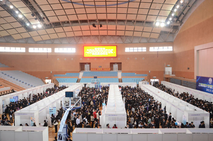 11月8日,上海海事大学2013届毕业生供需见面洽谈会顺利落幕。来自全国各地的近300家用人单位在体育馆与学生见面洽谈,为学生提供就业岗位3500余个,用人单位累计面试10990多人次,近500名学生当场签订就业协议。