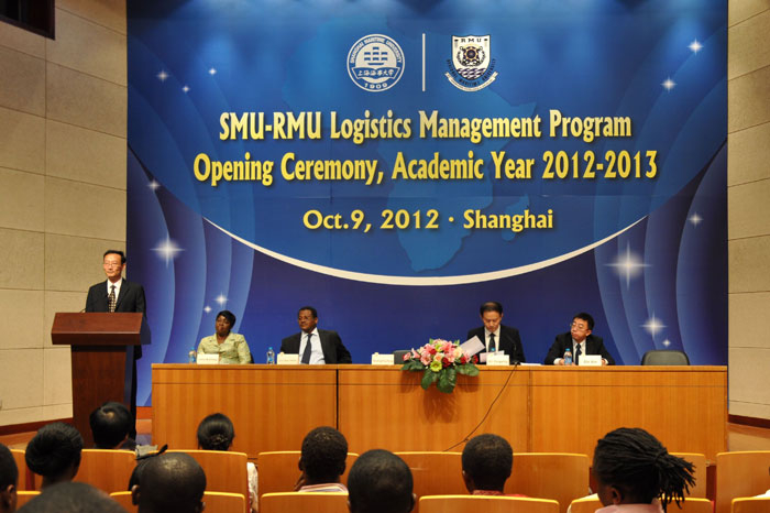 10月9日,上海海事大学-中西非地区海事大学物流管理本科项目2012-2013学年开学仪式在我校临港校区举行。来自加纳、喀麦隆等6个国家的36名中西非地区海事大学留学生,正式开始了在我校为期一年的学习生活。中西非地区海事大学校长Aaron Obeng TURKSON,上海海事大学校长黄有方及交通运输学院、国际交流处、国际教育学院等部门、学院负责人,全体留学生参加开学仪式。金永兴副校长主持大会。