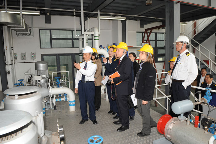 评估专家一行对我校在教育和培训方面的政府认证、检测等国家规定执行情况,航海教育师资,培训设施和设备,课程设计、审查和批准,培训检测和监督,学员能力评估和检查,招生、文凭和证书等各方面的情况进行了仔细检查。同时,评估专家一行对我校学生航海技能训练、消防演习,以及航海模拟器、轮机模拟器、水上训练中心、工程训练中心、船舶机舱综合实验室、图书馆等进行了现场考察。