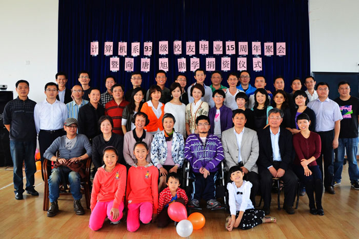 作为本次校友聚会的特别内容,计算机系93级校友举行了向唐旭助学捐资仪式。唐旭自从进入上海海事大学后,其学习、生活等受到了各级领导、学校师生和许多爱心人士的关注和帮助。尤其是2012年1月7日中央电视台一套综合频道《梦想合唱团》第九期节目播出后,唐旭自强不息、追逐梦想的感人事迹打动了全国广大电视观众。校友们也了解到了唐旭的情况,计算机系93级校友在聚会前积极倡议,自发进行了捐款,共筹集捐款3万元。