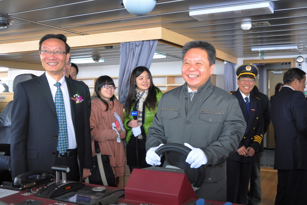 上海市2011年和2012年重大工程项目——上海海事大学教学实习船建造项目圆满完成。由中国海运集团所属中海工业公司承建的4.8万吨世界最先进远洋教学实习船今天(12月12日)在上海港国际客运中心码头正式交付上海海事大学。这是上海海事大学创新人才培养模式,提升教学科研水平,主动服务上海国际航运中心建设的有力举措。交通运输部副部长高宏峰,上海市委副书记殷一璀、副市长沈晓明,联合国国际海事组织海上安全司副司长Mahapatra先生,中国海运集团董事长李绍德、总经理许立荣等出席交船仪式并考察教学实习船。