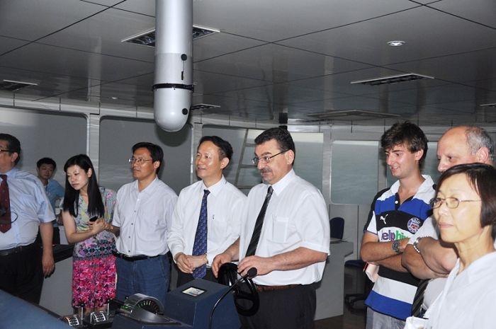 期间,金永兴副校长陪同来宾参观了我校航海模拟器、自动化机舱等实验室。