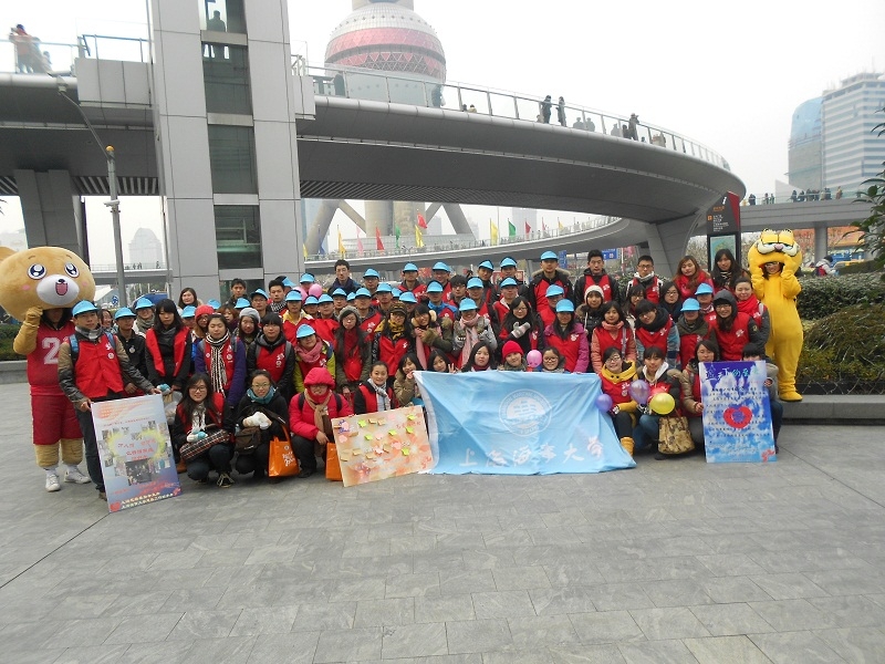 12月23日,在上海市慈善基金会的号召下,上海海事大学慈善工作站召集100名义工,冒着0摄氏度的寒潮在浦东陆家嘴正大广场附近开展“蓝天下的至爱,2012万人捐,帮万家,让特困家庭过好年”募捐活动。