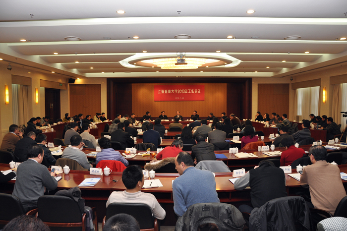 1月22日,上海海事大学召开2013年工作会议。校领导於世成、黄有方、金永兴、肖宝家、杨万枫、门妍萍、王海威,各部门党政主要负责人,各学院教授委员会主席、学科带头人,重点研究基地、重点实验室负责人,民主党派、民族联负责人,部分教学、科研骨干等出席会议。