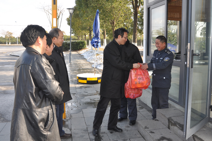 蛇年新春佳节来临之际,上海海事大学党委书记於世成、校长黄有方分别于2013年2月10日(正月初一)、2月9日(除夕)到临港校区,对节日期间仍辛勤值守在后勤服务中心、校医院、保卫处、学生处等部门岗位上的一线职工表示亲切慰问,向他们致以新年问候和新春祝福,并送上节日慰问品。后勤服务中心、保卫处、校长办公室等部门负责人陪同慰问。