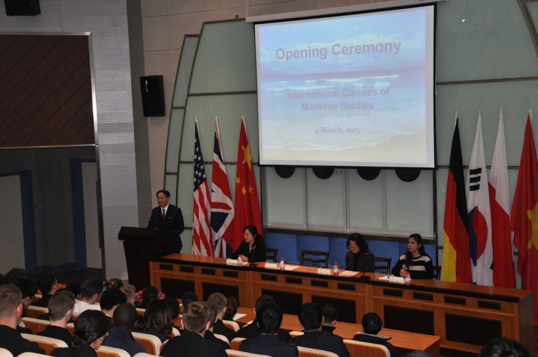 3月4日,上海海事大学第四期国际交流班项目正式开班。本期共有来自美国、德国、波兰、韩国、越南和英国的33名留学生来校学习,专业也从去年的3个增加到今年的4个——航海技术、轮机工程、航运管理和环境工程。美国麻省海事学院教师代表Chen Qi、Mirey Medina,我校金永兴副校长及相关学院、部门负责人等出席开班典礼。