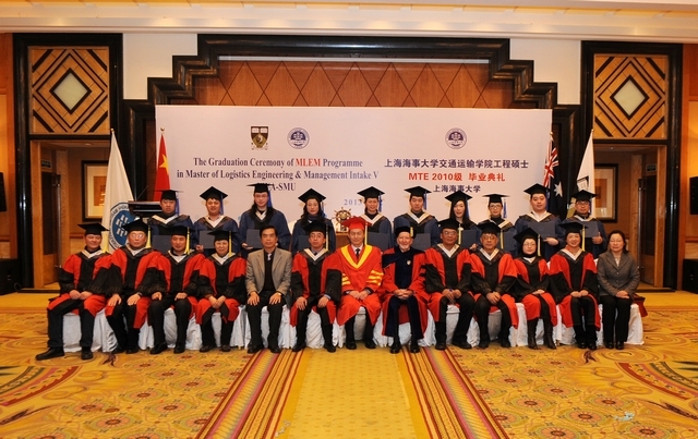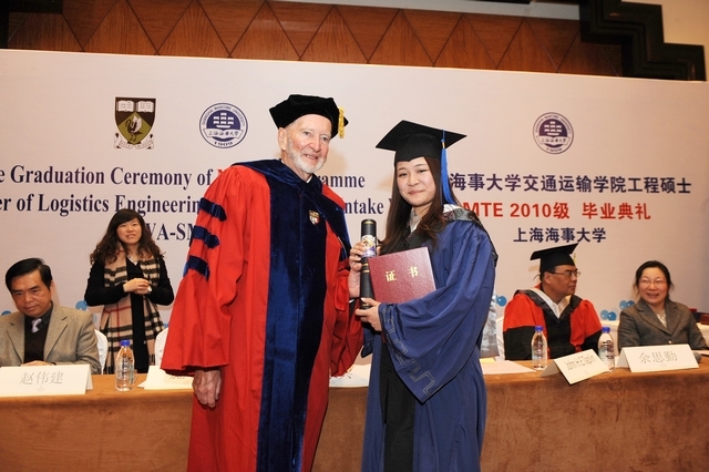 3月2日上午,上海海事大学与西澳大利亚大学合作举办的“物流工程管理”硕士项目第五届学员及交通运输学院“物流与港航管理”交通运输工程硕士2010级学员毕业典礼在浦东淳大万利酒店隆重举行。西澳大利亚大学教师代表约翰·坦普林教授,我校金永兴副校长及相关部门、学院负责人出席毕业典礼。典礼由交通运输学院施欣院长主持。