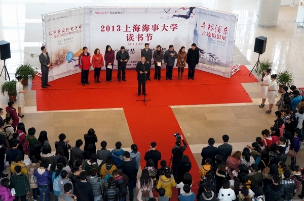 3月27日下午,“海大人文”节庆系列之2013上海海事大学读书节开幕式在图书馆大厅隆重举行。校党委书记於世成,宣传部、学生处、图书馆、团委等部门负责人及相关学院负责人出席开幕式。