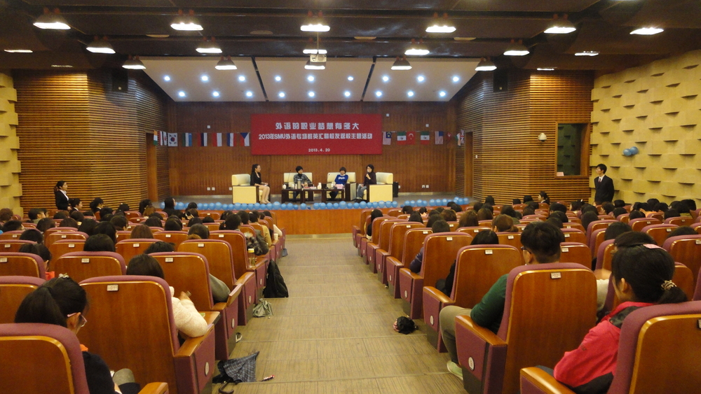 4月20日下午,适逢上海海事大学第五届校园开放日,外国语学院在科研楼报告厅举办了“2013年SMU外语专场群英汇暨校友返校主题活动”。南美轮船(中国)有限公司上海区总经理赵彦萍女士、米其林(中国)投资有限公司市场部经理高咏女士和上海世博发展(集团)有限公司创意策划部总经理毛竹晨女士作为我校英语专业1994届校友,走进母校新校园,与同学们交流职场经验,畅谈她们心中的“外语职业梦想”。来自外语专业和校内其他各专业的200多名本科生和研究生参加活动。外院2013届毕业生李亚欣担任现场主持。