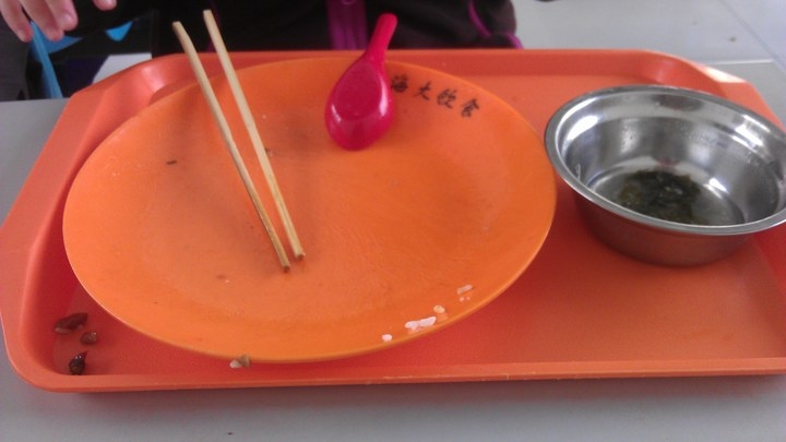 “光盘”活动在我校取得了良好的成效。据统计,在抽取的每日早、中、晚用餐高峰期,早餐“光盘率”达到了90%以上,中餐和晚餐“光盘率”则分别在80%和85%左右。部分倒餐的同学,餐盘中的食物也基本被“消灭”掉,只有部分残羹剩饭。学校第一食堂负责回收餐盘的阿姨反映,自从实行“光盘”活动以来,同学们的倒餐现象明显缓解,食堂每天清理的食物垃圾也减少了许多。交通运输学院国航101班张同学说:“我在学校每顿饭买一荤一素两个菜,能够全部吃完。以前有过米饭吃不完的情况,现在我会主动跟打饭的阿姨说明,请她给我少盛一点儿。”