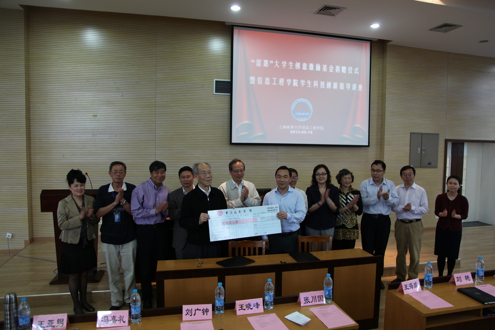 徐明全先生系上海海事大学离休老干部,曾任上海海运学院计算机教研室主任,是筹备组建上海海运学院计算机系成员之一。1990年离休后,他创办企业并取得良好的社会经济效益,关心现代年轻人成长。此次他出资二十万元,在我校信息工程学院设立“谊惠”大学生创意激励基金,目的就是鼓励青年人开展创新性科技研究活动,为年轻人的创新期望提供帮助和支持。