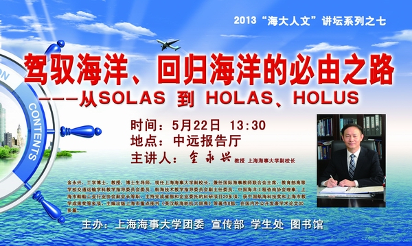 学术讲座公告:驾驭海洋、回归海洋的必由之路——从 SOLAS 到 HOLAS 和 HOLUS