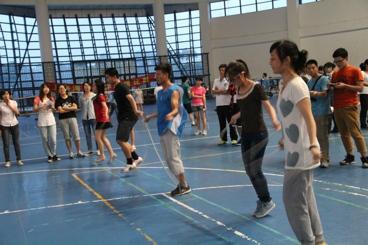 6月6日晚,由校体育部、校团委主办,校学联体育部、外国语学院体育部承办的踢跳比赛在南区体育馆举行。比赛项目有男女短绳、男女毽子、男女双飞以及长绳四个项目。