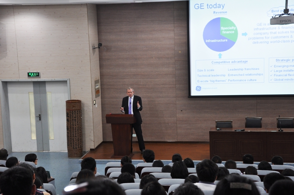 夏智诚先生从GE的发展历程、核心业务领域入手,重点阐述了领导者的管理素质、卓越领导力提升等内容。讲座结束后,夏智诚先生与我校学生进行了精彩互动,回答了中外学生提出的问题。