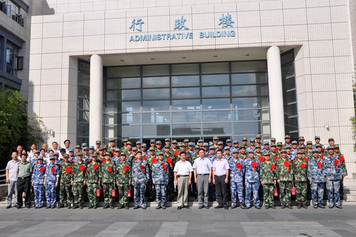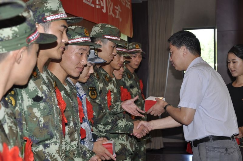 孔凡邨副校长代表学校为新兵送上慰问品,并表示,希望新兵们在部队好好锻炼,严格要求自己,做一名合格的、优秀的军人,展示上海海事大学学生的风采,报效祖国和家乡父老。
