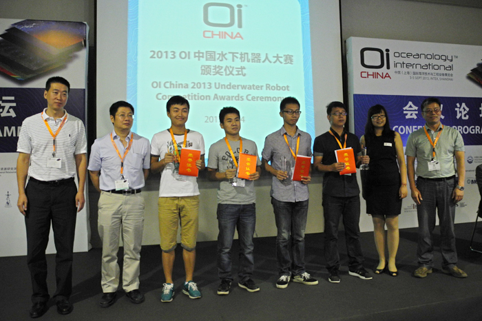 9月3日至5日,首届“中国(上海)国际海洋技术与工程设备展览会(OI China)”在上海国际展览中心举行。由中国海洋学会和中国(上海)国际海洋技术与工程设备展览会(OI China)联合发起的“OI中国水下机器人大赛” 获奖项目日前揭晓,我校“水下机器人与智能系统实验室”提交的两份作品分别荣获大赛“仿真组”项目一等奖和“控制组”项目二等奖,获奖作品亮相展览会现场。
