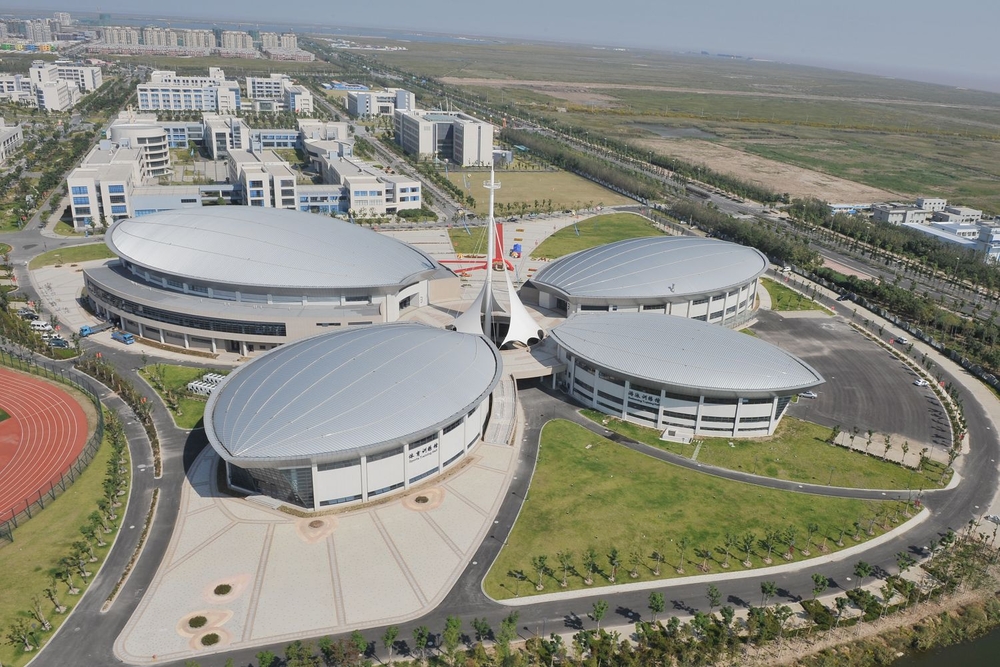 上海海事大学临港校区体育中心(体育馆)位于上海海事大学校区西南角,北面为海事大学南区宿舍区,东临海事大学商船学院和科研楼,西面为东海大桥引桥,南临海港大道。该馆为海事大学的一个标志性建筑物,是一幢集中了节能、绿色、环保等众多现代化设计理念的综合性公共体育设施,为海事大学体育教学和举办高级别体育赛事的主要基地。
