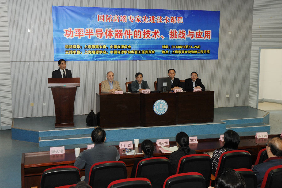 10月21日,由上海海事大学和中国电源学会主办的国际高端专家先进技术课程 “功率半导体器件的技术、挑战与应用”在我校物流工程学院124报告厅顺利开幕。开幕式上,我校金永兴副校长致欢迎辞,浙江大学徐德鸿教授作主题发言。开幕式由汤天浩教授主持。