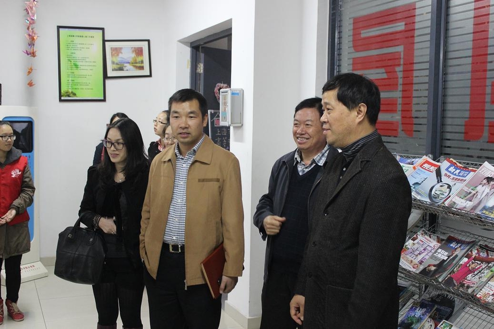 来宾一行参观了校学生自助服务中心、爱心慈善超市、心理健康咨询中心等学生服务机构。
