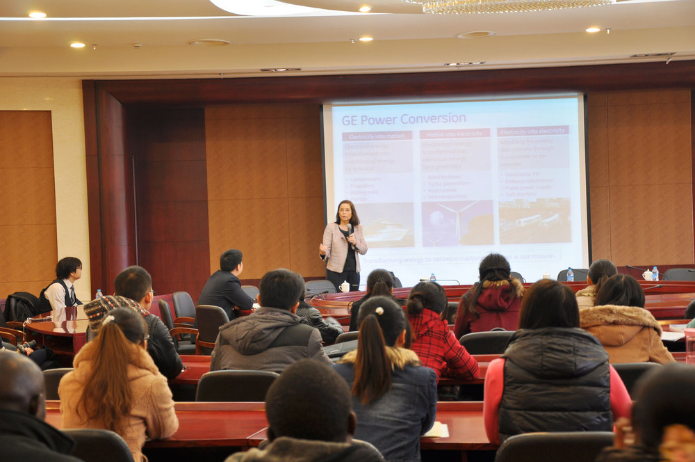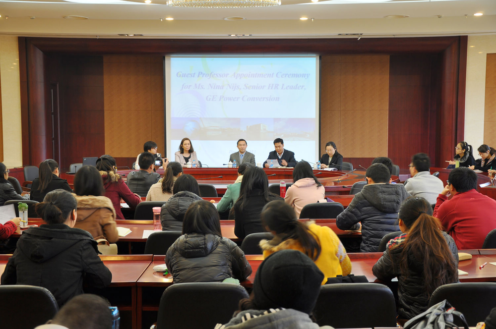 授聘仪式结束后,Nina Nijs女士为我校师生做了题为“Collaboration in Talent Development”的主题演讲,以通用电气为例介绍了人力资源培养的机制与方法,并与学生进行了互动。
