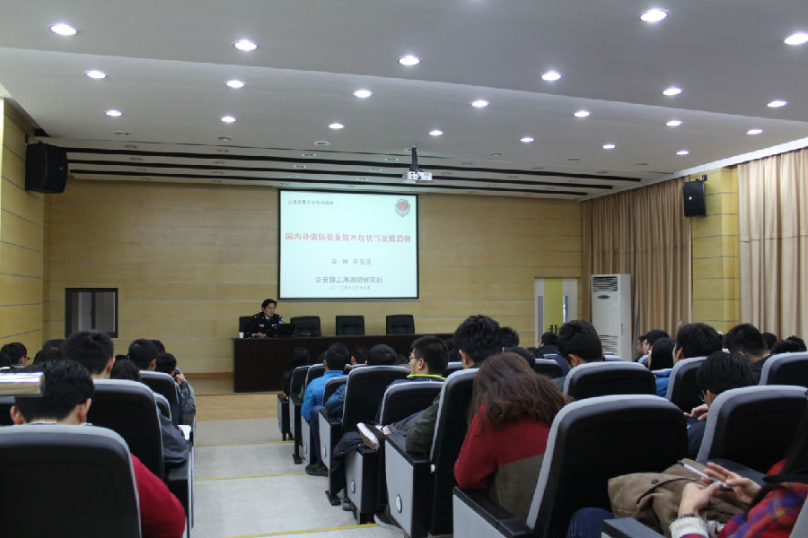 薛林研究员作了“国内外消防装备技术现状与发展趋势”的报告,从我国消防工作的概述,消防装备的定义、分类和配备,消防装备技术发展现状,现代消防装备技术发展趋势等四个方面进行阐述。整个报告内容丰富,学术性强,开阔了广大师生的视野。