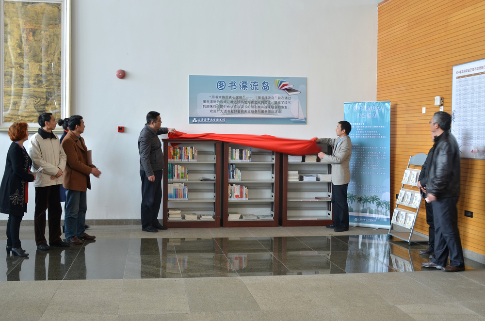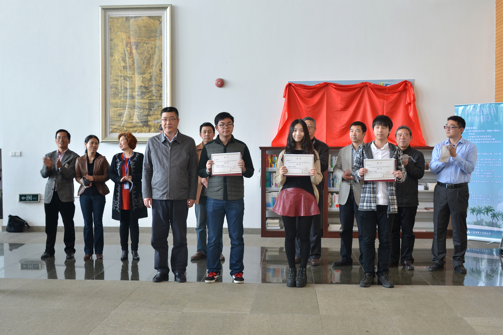 杨万枫副校长为“2014届本科毕业生图书借阅排行榜”前三名的同学颁奖,宣布本届读书节开幕,并与李志鹏处长一起为“手留余香”图书漂流岛活动揭幕。