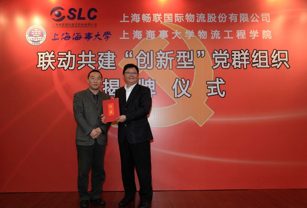 4月2日上午,上海畅联国际物流股份有限公司与上海海事大学物流工程学院联动共建“创新型”党群组织揭牌仪式在我校行政楼128会议室举行。上海畅联国际物流股份有限公司总裁徐峰、副总裁潘建华、副总裁陈文烨,我校校长黄有方、副校长王海威及相关学院、部门负责人等出席揭牌仪式。