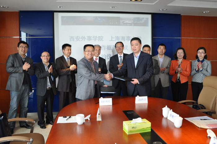 4月9日上午,上海海事大学与西安外事学院校际合作框架协议签订仪式在我校举行。西安外事学院董事长黄藤、副院长李海峰等一行4人,我校校长黄有方,党委副书记、副校长孔凡邨及相关职能部门负责人参加签约仪式。仪式由孔凡邨副校长主持。