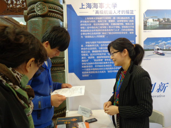 4月11日至13日,2014年第十一届上海教育博览会教育国际化展在上海展览中心举行。上海海事大学在中外合作办学展区展示了我校与世界海事大学合作举办的“国际运输与物流”理学硕士教育项目,以及与荷兰泽兰德大学合作举办的“机械电子工程”和“电气工程与智能控制”本科生培养项目。