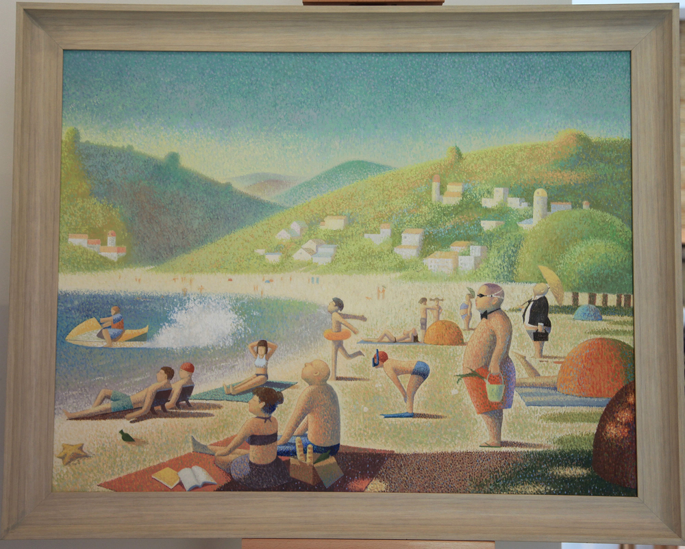 张霆先生是上海海事大学徐悲鸿艺术学院的青年教师,他毕业于天津美术学院油画系,在本科与研究生学习期间专攻古典油画。十多年来致力于古典绘画的研究,在创作中作出了骄人的成绩。此次展出的作品既是他教学思想的昭示,也是他创作理念的成果。在“回溯古典”部分,张霆先生将夏尔丹,安格尔,修拉以及哈德逊画派等在西方美术史上占有重要地位的大师经典作品娴熟而精妙地再现出来受到观众的赞赏;在“古典演绎”部分,除了承袭大师的绘画语言,又融入作者主观感受与当代元素,使之成为一种新的创作,作品彰显了浓厚的现代气息。一些专家,学者认为这种诗意现实主义的创作理念,在当下艺术界浮躁,流俗的商业大背景下,有着回归传统,追溯艺术本质的标识意义,张霆先生的艺术创作,不仅使经典赋予新意,而且使油画有了一种新的样式。