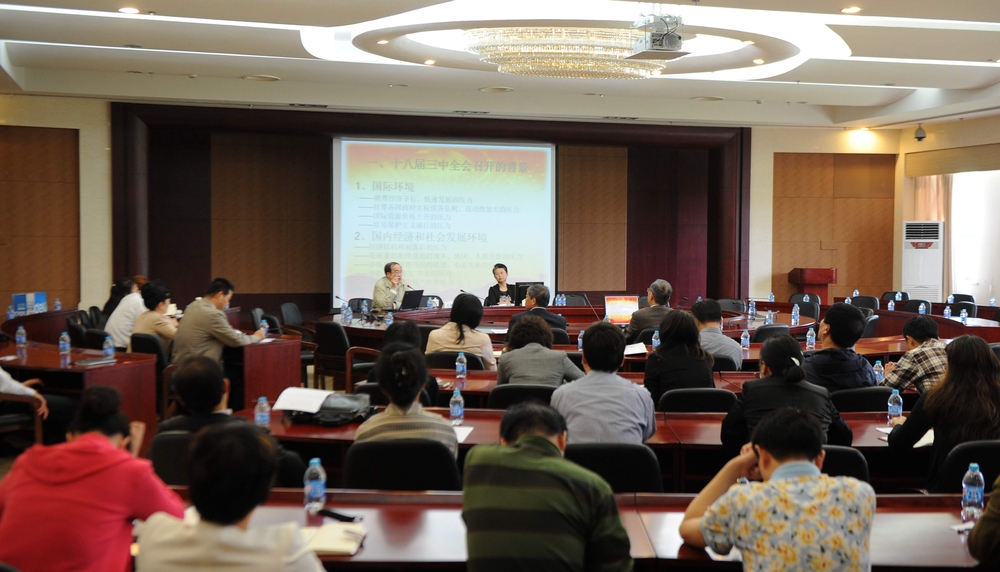 周锦尉教授以“学习习近平总书记重要讲话精神,推进全面深化改革”为题,从分析国际环境、国内经济和社会发展环境等两个方面入手,介绍了十八届三中全会召开的主要背景和重要意义,并通过列举大量实例,深入阐述了我国经济体制改革要求、政治体制改革要求和生态方面的体制改革要求。