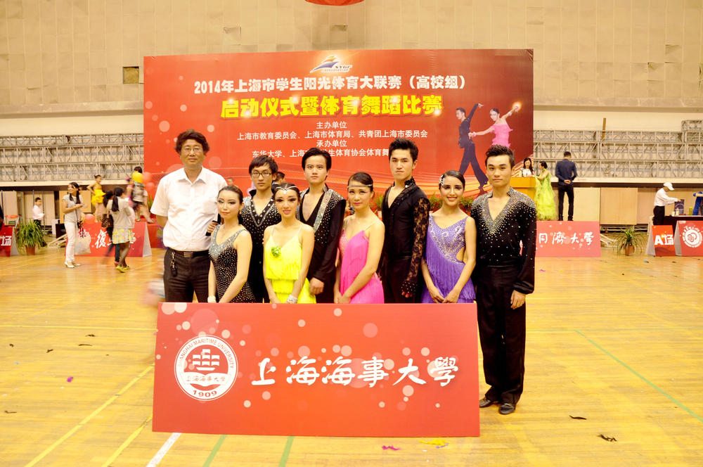 5月24日,由上海市教育委员会、上海市体育局、共青团上海市委员会联合举办的2014上海市学生阳光体育大联赛启动仪式暨体育舞蹈比赛在东华大学体育馆隆重举行。上海海事大学舞蹈队在拉丁舞校队教练姚秀华老师和领队朱德喜老师带领下再获佳绩。