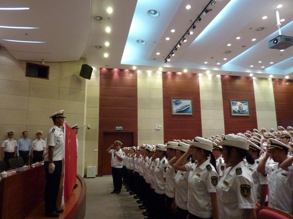 开班仪式前,培训班学员们进行了庄严的入局宣誓,并合唱了中华人民共和国国歌和《海事之歌》。