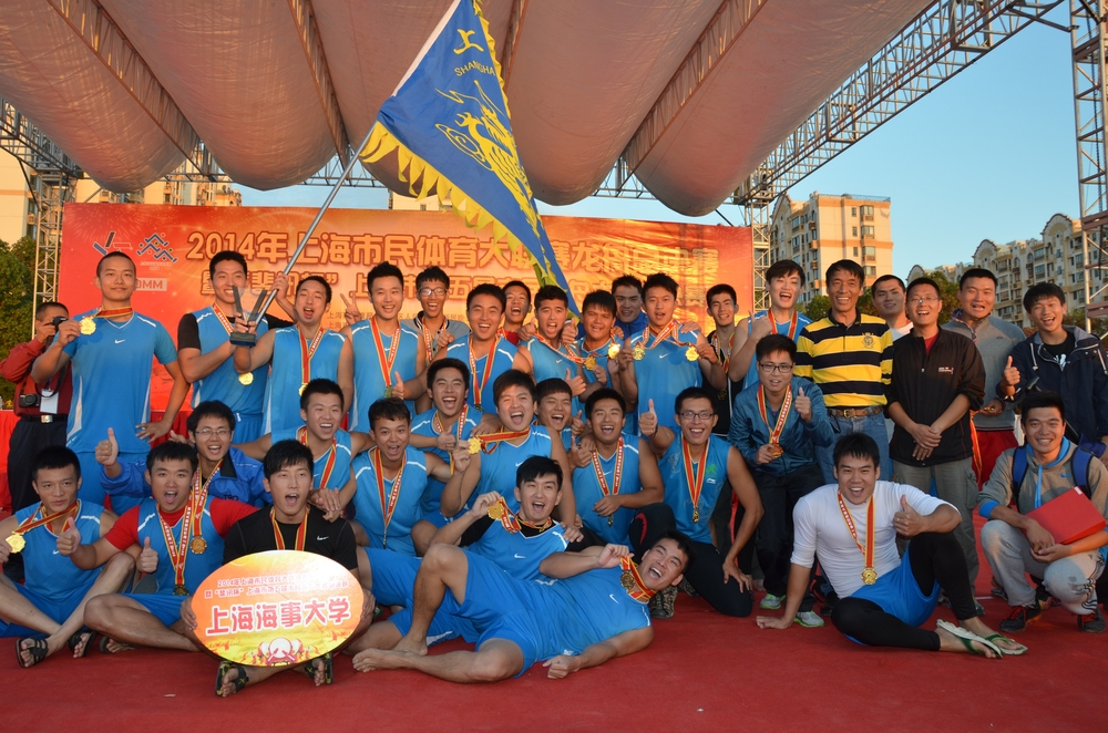 10月18日,2014年上海市民体育大联赛龙舟总决赛暨市民龙舟大赛总决赛在松江区泰晤士小镇华亭湖举行,从全市415支龙舟队伍中脱颖而出的53支龙舟队为2014年上海龙舟年度总冠军而战。上海海事大学龙舟健儿们奋力拼搏,众志成城,获得了公开组小龙舟200米和公开组大龙舟500米双料冠军。