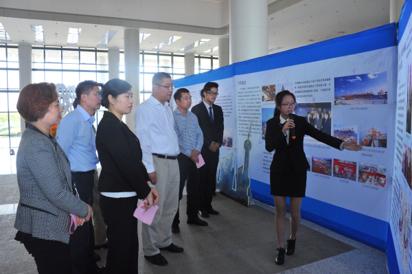 杨万枫副校长宣布航运物流节开幕,并在四位大一新生的讲解下参观了“国际航运中心建设展”。他肯定了四位同学的精彩讲解,鼓励同学们在接下来的学习中继续丰富航运、物流相关知识,做一个合格的海大人。