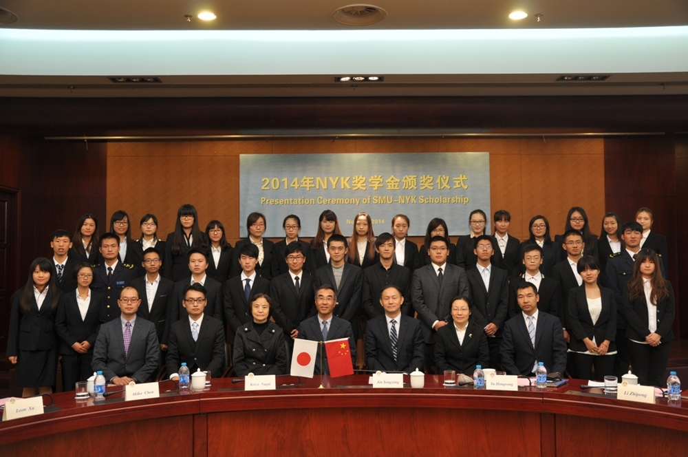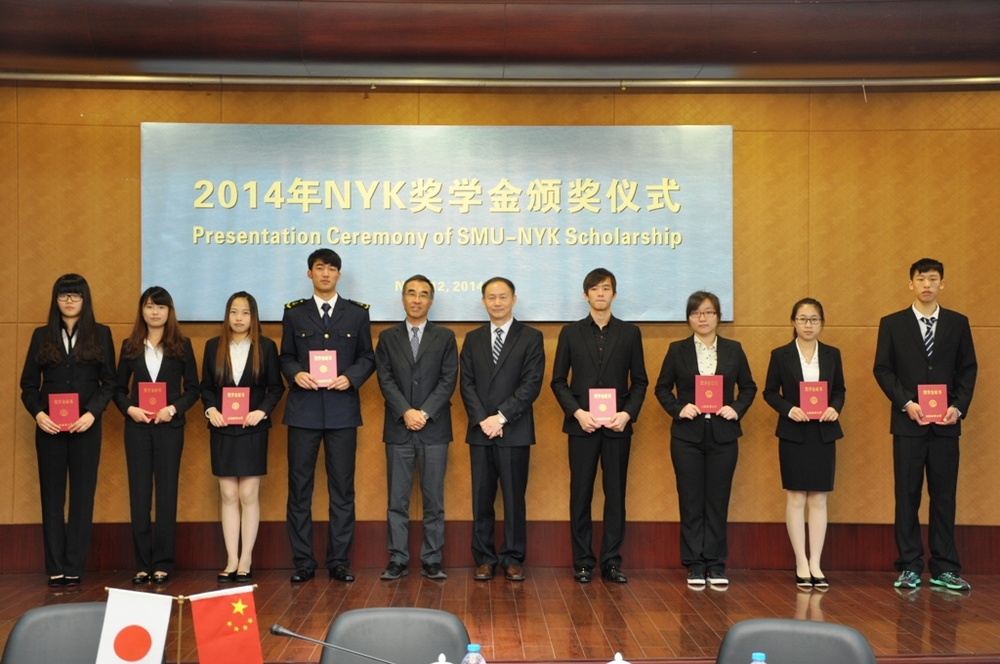 11月12日,2014年度NYK奖学金、助学金颁奖典礼在我校举行。NYK中国总代表永井圭造先生、我校金永兴副校长出席颁奖典礼并为获奖同学颁奖。