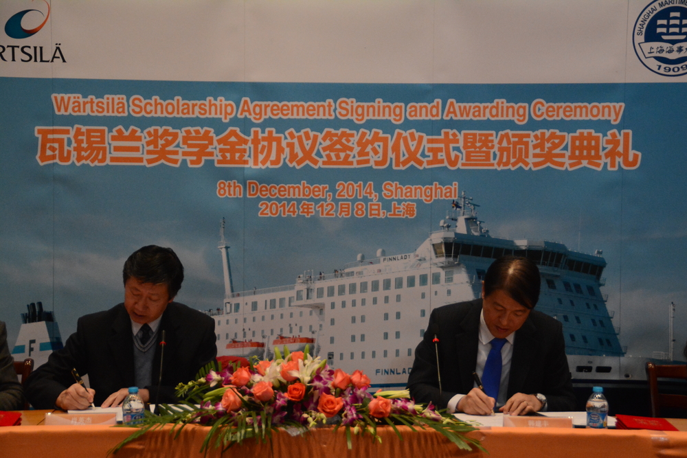 12月8日下午,瓦锡兰奖学金签约仪式暨颁奖典礼在上海海事大学商船学院报告厅举行。