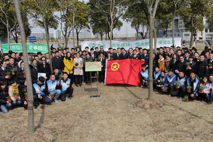 3月11日下午,临港地区50多家各级各类团组织的200多名团员青年齐聚上海海事大学,以“和木成林,植木树人、绿满临港”为主题,共同开展了2015年度首次临港地区区域化团建活动——青年林建设活动。我校党委副书记、副校长孔凡邨出席致欢迎辞,并与临港青年共同种下友谊之树。