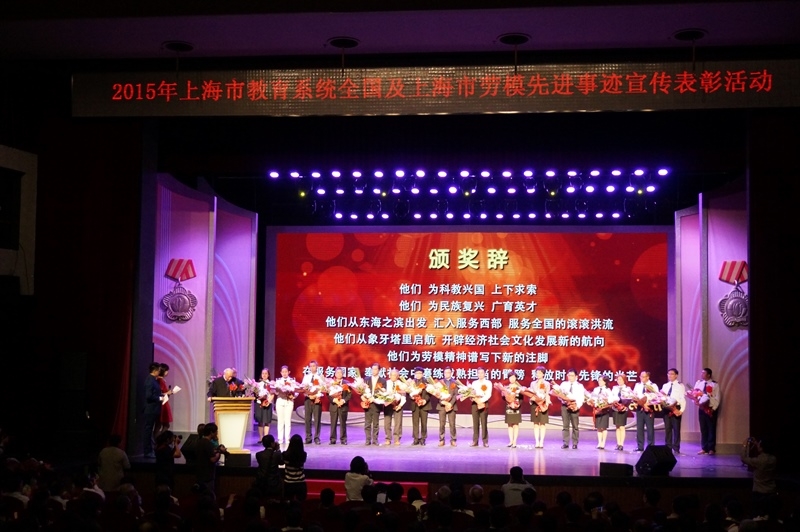 整场活动采用VCR总片头的集中介绍和现场采访相结合,从“教书育人”“科研创新”和“服务社会”三大板块宣传展示了劳模们的风采与精神。同时,全国教书育人楷模于漪、上海市教育功臣翁史烈、上海市教育功臣王振义三位德高望重的杰出老劳模作为颁奖嘉宾,分别宣读了集体颁奖词。