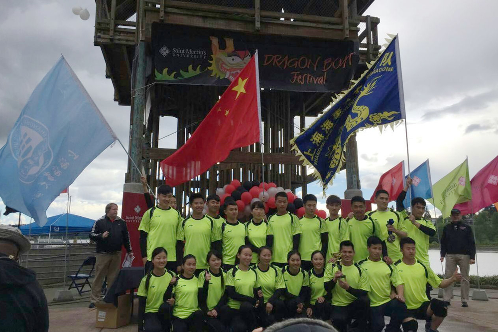 导读:美国当地时间2015年4月25日,华盛顿州第十届挑战杯龙舟赛在奥林匹亚市举行。本次比赛由圣马丁大学承办,共有来自美国和中国的42支龙舟队、5000多名队员参加。上海海事大学龙舟队、上海中医药大学龙舟队代表中国应邀参赛。最终,上海海事大学龙舟队技压群雄,夺得比赛冠军。该校龙舟队带队负责人表示,这是上海海事大学龙舟队在大洋彼岸美国的一场荣誉之战。学校以“龙舟赛“为媒,弘扬中国传统文化,传递中美友谊,把“海大”学子的风采带到了美国,在当地刮起了一股强劲的“中国风”和“龙舟热”,为学校、为上海、为中国架起了一座中美交流的桥梁,有力提升了学校以及上海这座城市在当地的影响力。