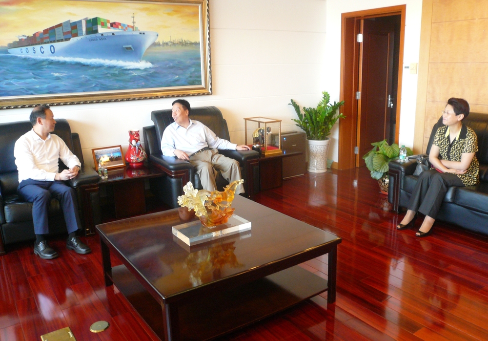 6月2日,上海海事海事大学党委书记金永兴、副书记门妍萍等一行5人拜访中国远洋运输总公司,受到公司领导的热情接待。