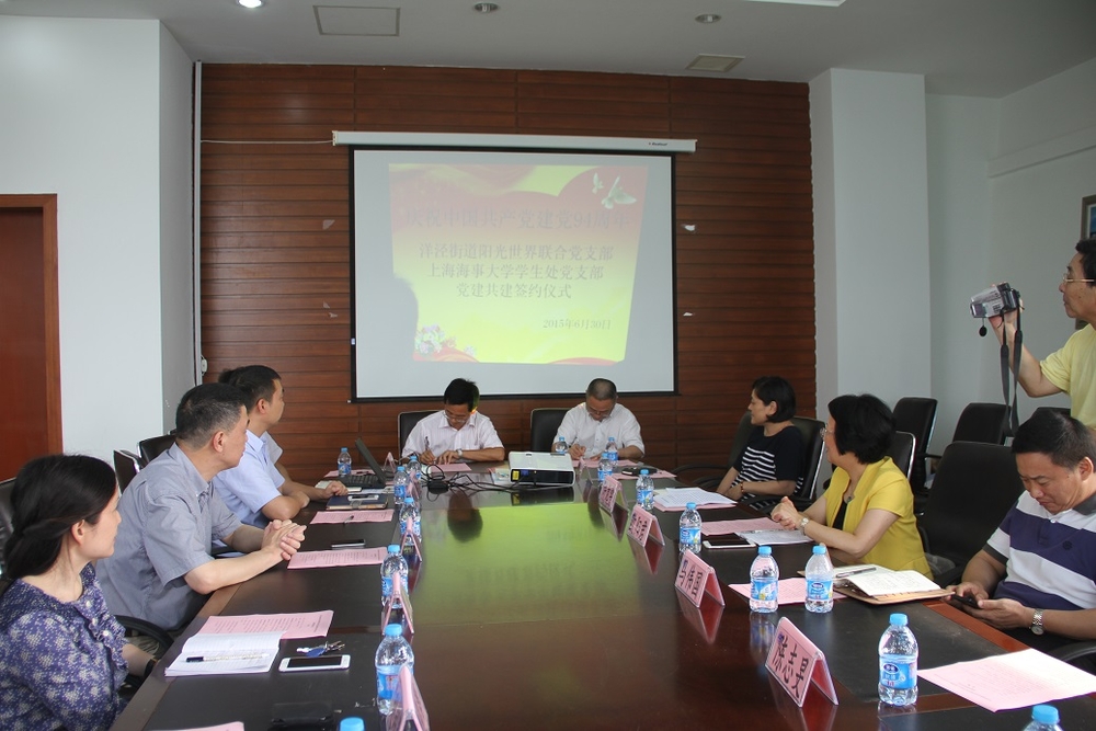 6月30日下午,上海海事大学学生处(武装部)党支部与洋泾街道阳光世界联合党支部举行共建签约仪式,共同探讨学习型、服务型、创新型党支部建设。洋泾街道党工委副书记、综合党委书记欧阳君,居民区党委副书记马伟国,社区综合党委、阳光世界联合党支部及“两新”组织书记、居民区书记等一行23人,我校党委副书记、副校长孔凡邨及学生处(武装部)成员等参加签约仪式。