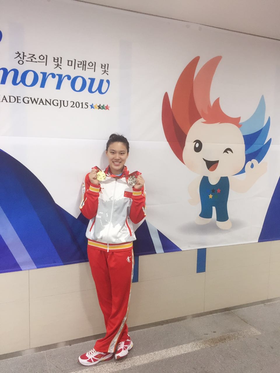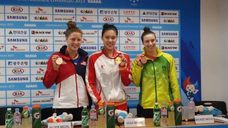 7月7日,在第28届世界大学生夏季运动会游泳比赛中,上海海事大学国航126班张思诗同学获得一金一银,这是我校游泳队在世界大学生运动会上取得的最好成绩。