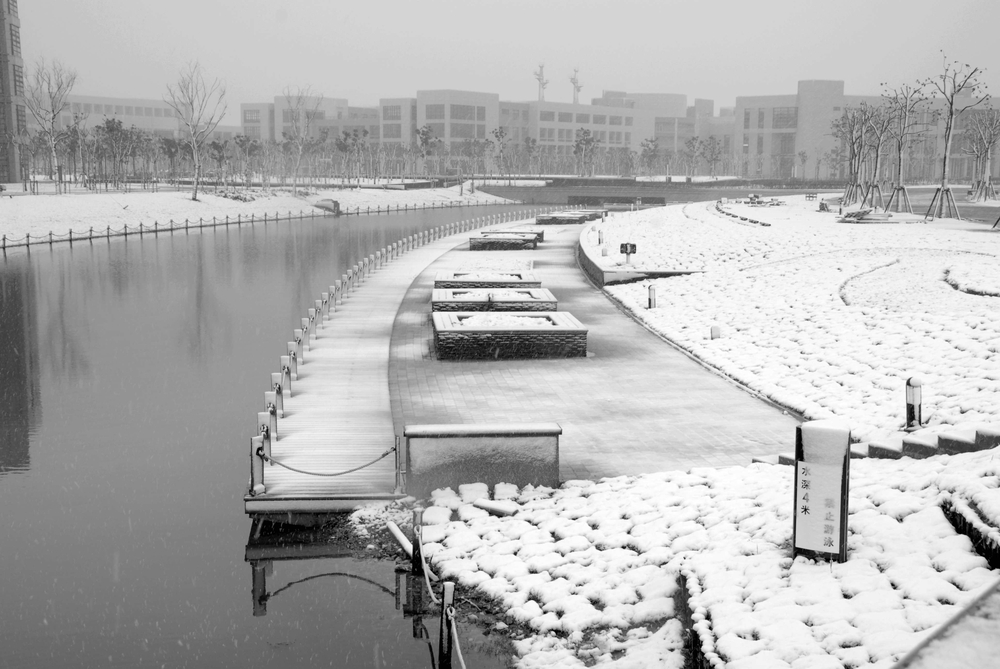 回忆那些跟踪拍摄的日子和一张张照片背后的故事时,韩宝威老师说,他印象最深的是2008年春节的那场大雪,“上海从来没下过那么大的雪,我觉得雪后的新校校园,一定会有别样的美丽。”韩宝威老师带着无比兴奋的心情,天未亮就从民生路校区赶到了临港新校区,拍下了百年难遇的校园美丽雪景。在2008年10月新校落成之际,韩宝威老师又乘上直升飞机,从空中鸟瞰新校的壮观全景,拍摄到了许多“空中看海大”的珍贵照片。