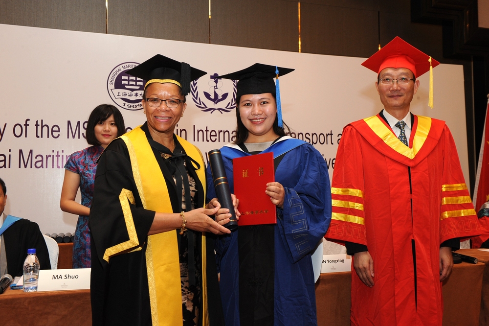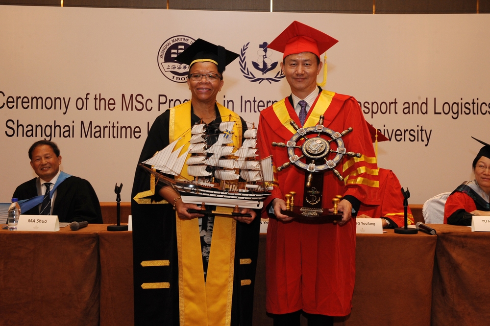 8月22日上午,上海海事大学与世界海事大学合作举办的国际运输与物流硕士项目第十届学员毕业典礼在上海淳大万丽酒店举行。世界海事大学校长克利奥帕特拉·杜姆比亚-亨利博士(Dr. Cleopatra Doumbia-Henry)、副校长马硕,我校党委书记金永兴、校长黄有方及21世纪丝绸之路研究院、国际教育学院、国际交流处、研究生院负责人和教师代表等出席毕业典礼。
