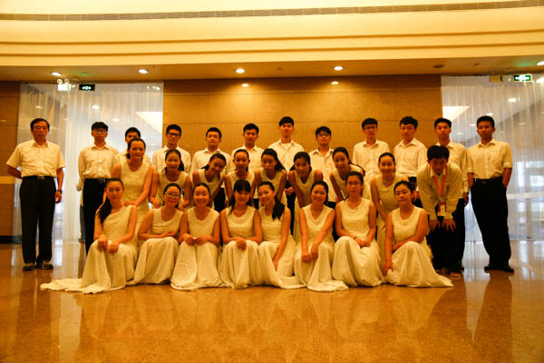 此次展演由铭记历史及和平颂歌两部分组成。我校合唱团与外国友人共同演唱了《we are the world》,并参与合唱了《义勇军进行曲》《黄河大合唱》《喀秋莎》《共筑中国梦》等曲目。