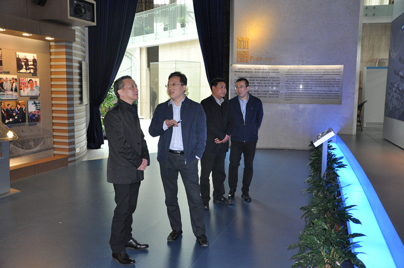 丁向明副总裁带领严伟副校长一行参观了上港集团展示厅,重点介绍了集团的发展历程和业务领域,同时感谢上海海事大学为集团培养了许多优秀员工。