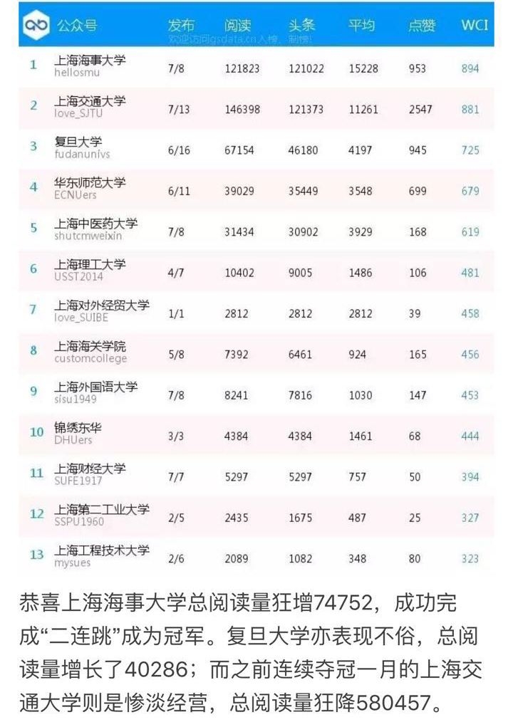 “全国高校微信公众号综合影响力排行榜”由中国青年报自2014年11月17日起推出,借助详实的数据,每周推出一期榜单,分析评估各高校官方微信公众号的表现,具有广泛的影响力。官方微信上周推出的“我是大海的后裔,同样的家国情怀与颜值担当!”一文在我校师生、校友及航运圈中广受好评,成为首个阅读量超过10万的推送已成定局,并被光明日报官方微博、上海市教委官方微信等媒体转载,树立了我校良好的社会形象。