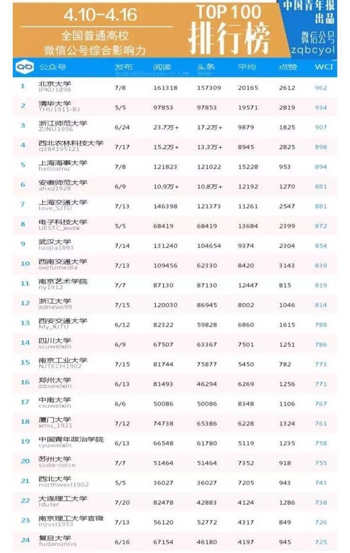 日前,我校官方微信“上海海事大学”在中国青年报推出的“全国高校微信公众号综合影响力排行榜”4月10日至4月16日的榜单中,紧随北京大学、清华大学、浙江师范大学等高校名列全国高校第5名,在上海高校中排名第一。