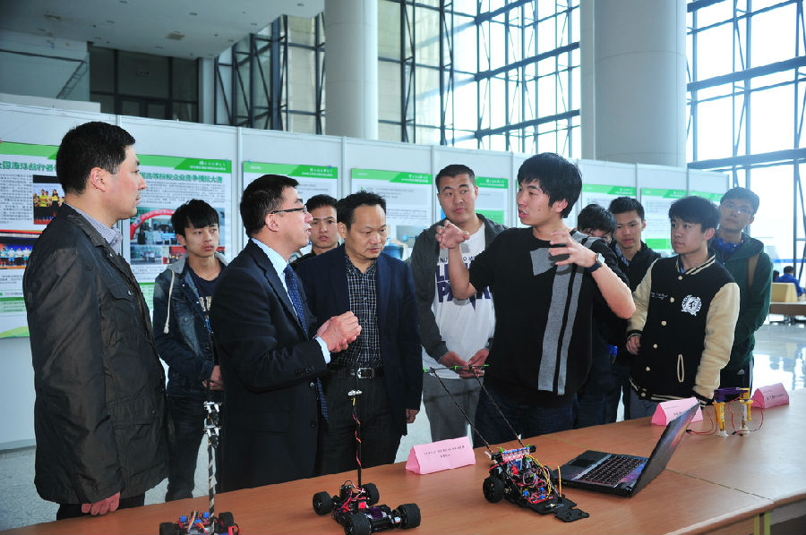 4月20日下午,上海海事大学2016年大学生创新创业成果展在图书馆大厅举行。副校长施欣,教务处、图书馆、各学院相关负责人,各参展项目指导教师、团队成员及参加竞赛学生出席成果展。此次成果展示时间为4月20 日至5月13日。